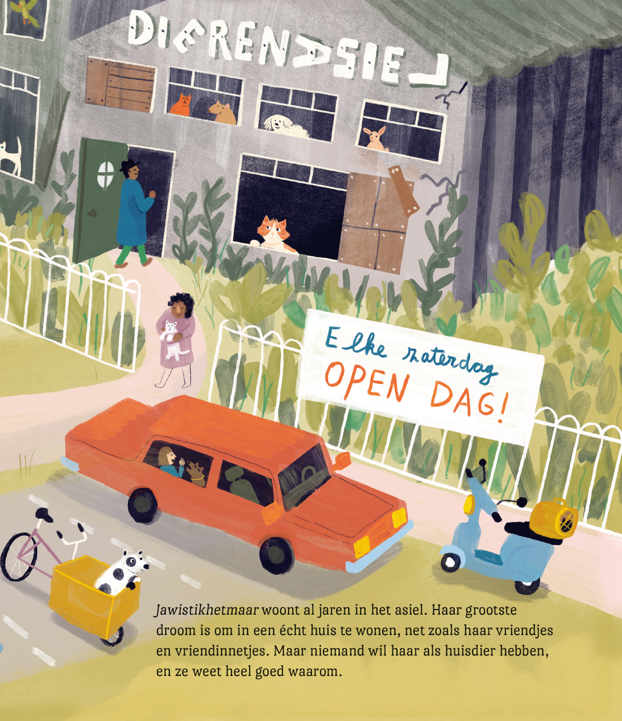 Alle dieren vinden snel een baasje in het asiel, behalve Poezel. Ze is te groot voor een poes, te klein voor een ezel én ze maakt een gek geluid: